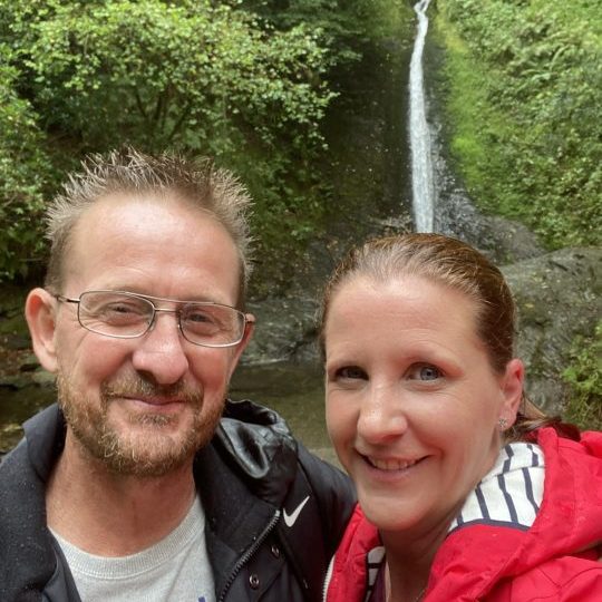 Friendly couple looking