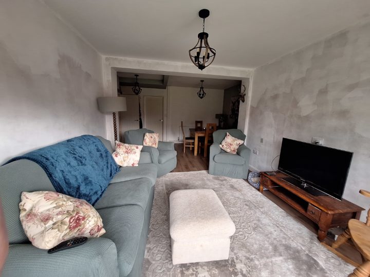 Shared lounge/diner, kitchen, bathroom with bath and over bath shower and downstairs toilet (all modern and brand new following an extension). Kitchen is equipped with dishwasher, washing machine, tumble dryer, double oven, toaster and two microwaves plus cutlery, crockery etc.