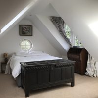 Light and spacious triple aspect room in country house. Sole use of large office/study space with Ethernet and fast broadband. Shared use of kitchen/breakfast room, laundry and large garden. You will be sharing with me (teacher) and my large but...